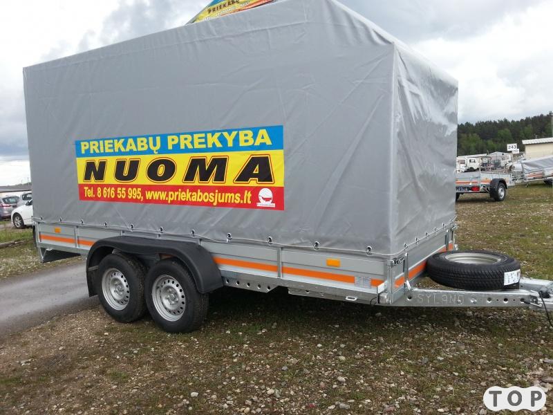 www.priekabunuoma.eu .Naujos, dviašės automobilinės priekabos geromis kainomis!. Dydžiai: 4, 20m, ilgis , 1, 60m plotis, 2m tento aukštis nuo grindų. Bendra masė 750kg . Kaina 80lt.Šiai priekabai užtenka B vairuotojo kategorijos. Kita priekaba bendra masė 2700kg. 4m ilgis , 2m plotis , tento aukštis nuo grindų 1,90m. Ši priekaba pritaikyta lengvųjų automobilių pervežimui( turi užvažiavimo trapus). Lygus dugnas , dugne yra 4 tvirtinimo kilpos. Taip pat yra pritvirtinta įtempimo gervė. Kaina 80lt.Šiai priekabai reikalinga E arba BE vairuotojo kategorija. Abi priekabos nuomojamos su tentais. Jei norite be tento , galime nuimti.Priekabos yra tvirtos plieninės konstrukcijos su lingėmis ir amortizatorais, atidaromi bortai. Todėl važiuojant su tokia priekaba jausitės saugiai ir stabiliai. Priekaba tvarkinga. Yra visi reikalingi priekabos dokumentai - draudimas ,žalia korta, techninės apžiūros liudijimas, galima vykti į bet kurią šalį. Turintiems Europinę 13-os kontaktų rozetę, duodame adapterį 7-ių kontaktų.